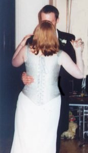 I made a bodice for a bride (see right) using an 18th century corset pattern, the same original source used by Vivienne Westwood for her beautiful bustiers. It was worn with a modern slim full length skirt. Also popular this season have been dresses with corset style bodices in sumptuous brocades or covered with lace.